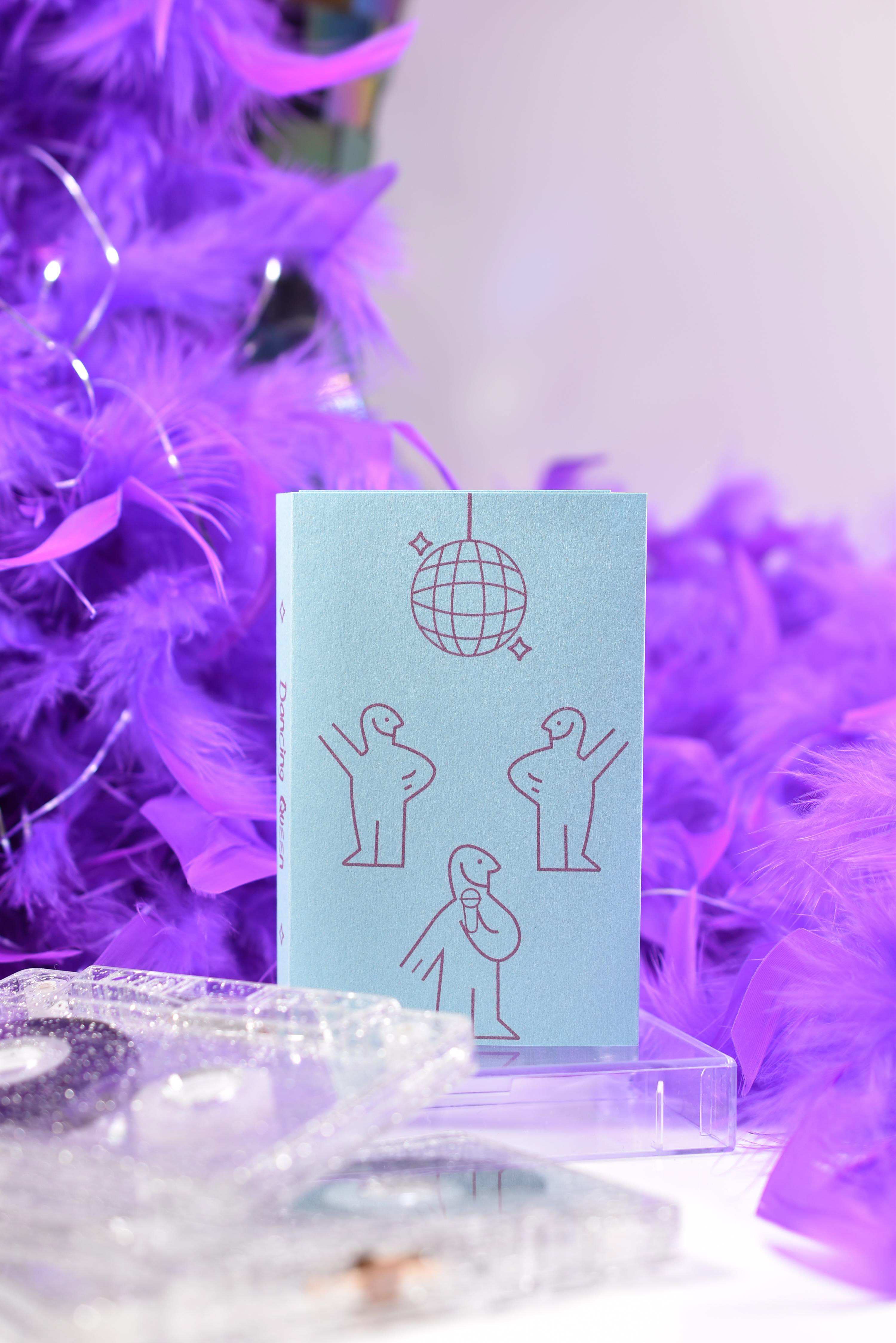 ‘Dancing Queen’ is a screen-printed J card which represents the micro genre of Swedish Schlager. The J card demonstrates the popular Swedish show named ‘Melodifestivalen’ with the iconography showing the journey that happens with a successful Swedish schlager.